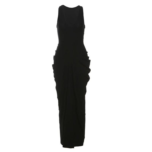 Ruched hollow out slit solid tube cut out maxi dress