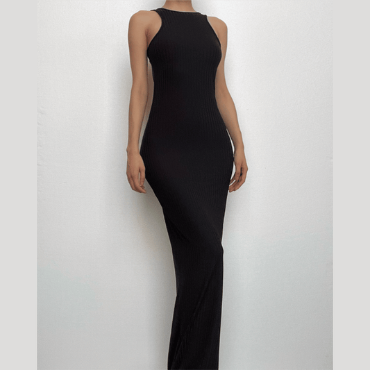 Cross front solid hollow out halter backless 2-way cut out maxi dress-final-sale