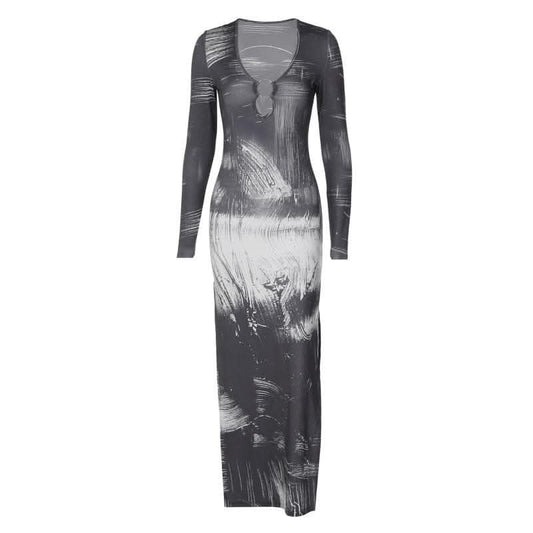 Long sleeve gloves irregular hollow out crewneck cut out maxi dress-final-sale