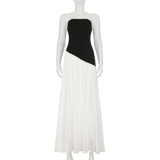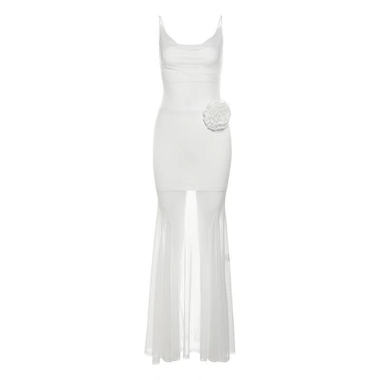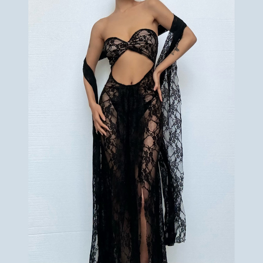 Lace sweetheart neck hollow out slit cut out maxi dress