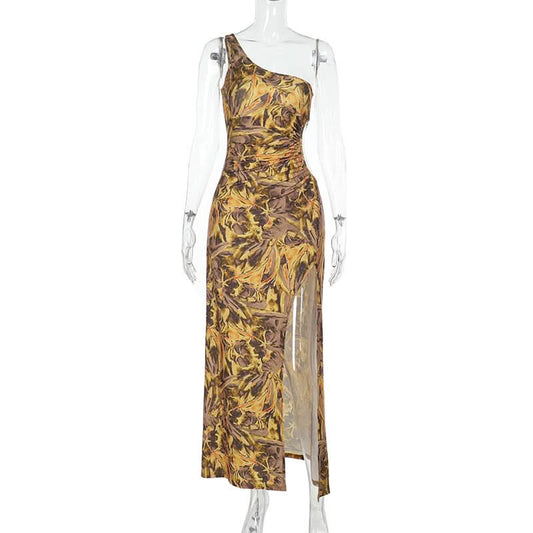 Cowl neck backless ruffle butterfly print mesh cami maxi dress