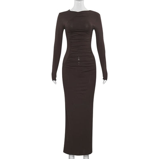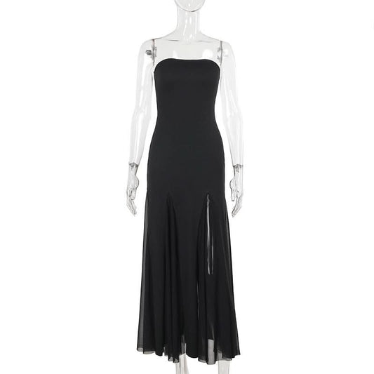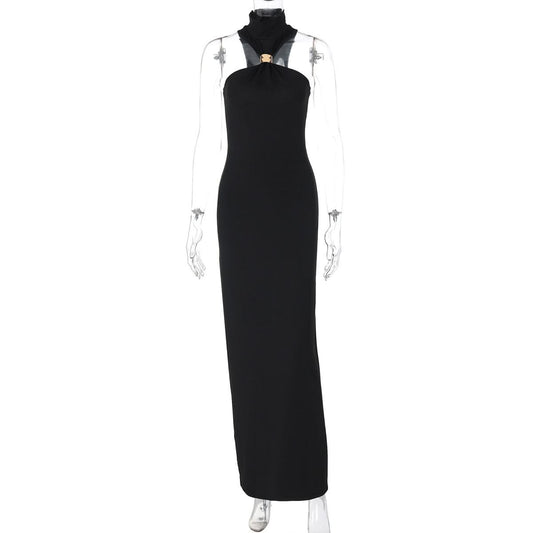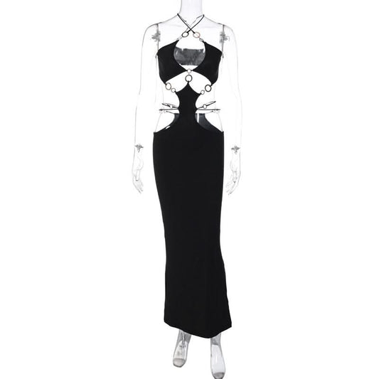 V Neck Dress Hollow Out Cutout High Slit Maxi Dress