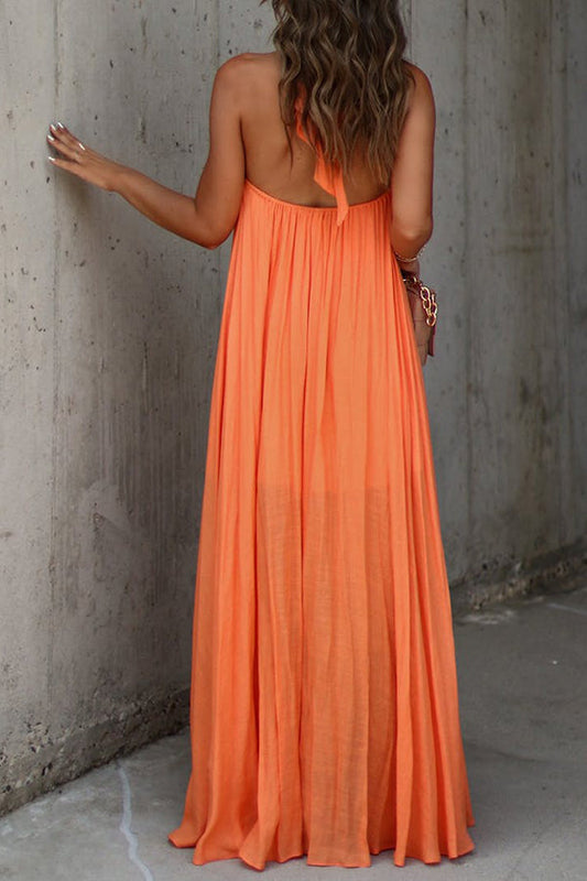Beaming Smile Satin Halter Neck Pleated Midi Dress