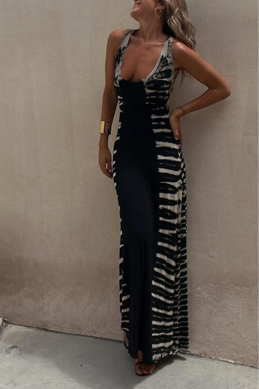 Starry Sky Tie-dye-print Stretch-back Maxi Dress