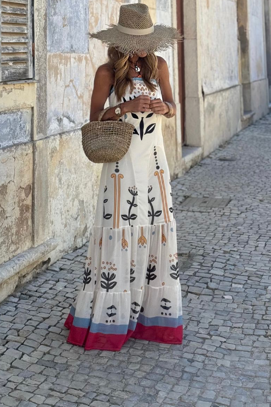 Unique Printed Bohemian Short-sleeved One-shoulder Maxi Dress