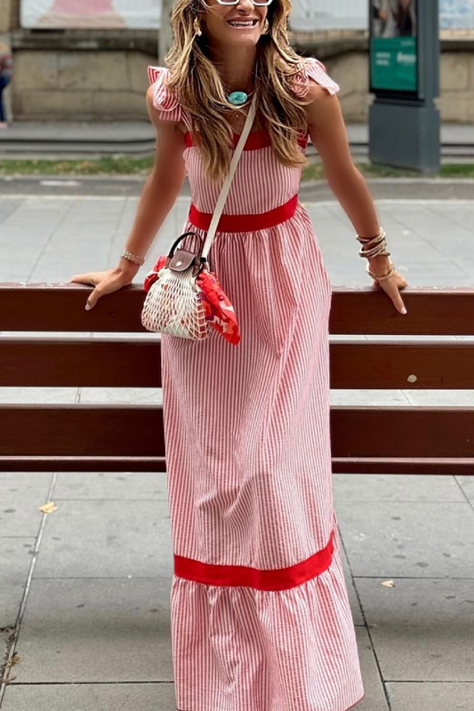 Yellow and Black Striped Sleeveless Waist Long Dress
