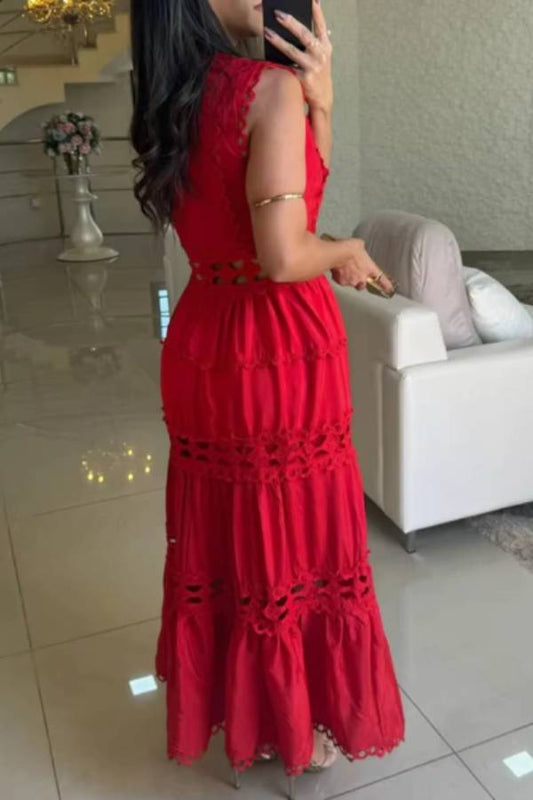 Eternal Grace Crochet Cutout Lace Trim A-line Maxi Dress
