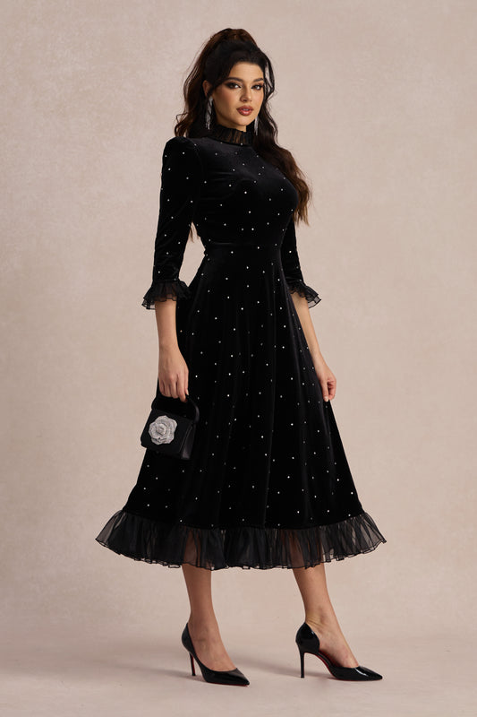 Jolie Diamante Ruffle Velvet Maxi Dress