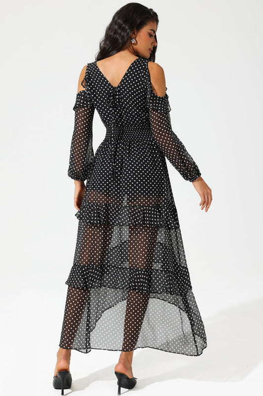 Cold-Shoulder V-Neck Ruffled Maxi Dress