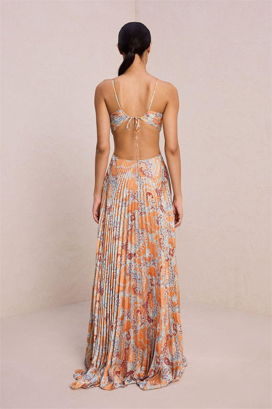 Floral Off-Shoulder Halter Neck Pleat Maxi Dress