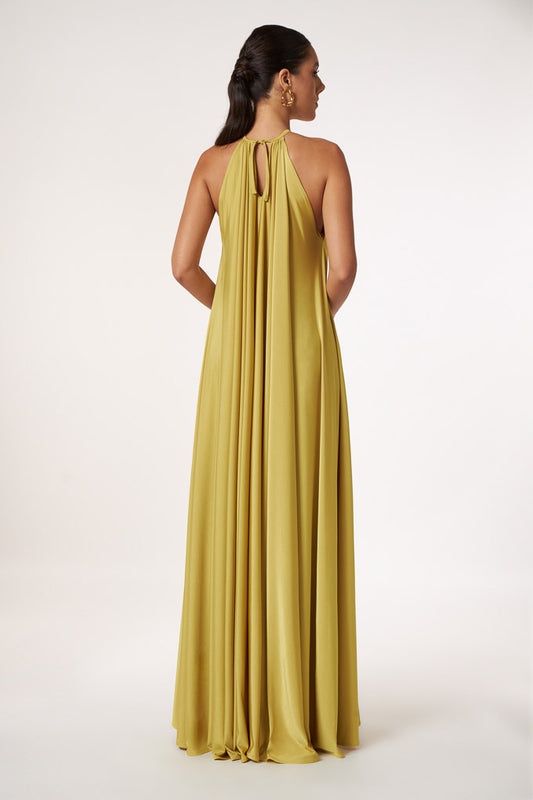Emerald Reed Print Halter Neck Sleeveless Maxi Dress