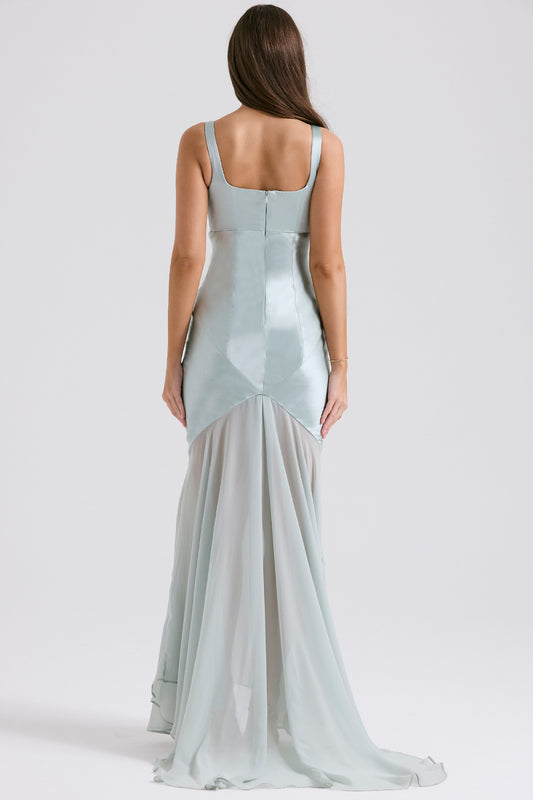 Rhinestone Stand Collar Solid Mermaid Maxi Dress