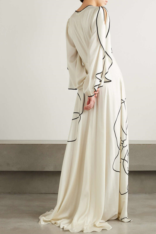 Garden Party Floral Satin Cut Out Back Lace-up Maxi Dress