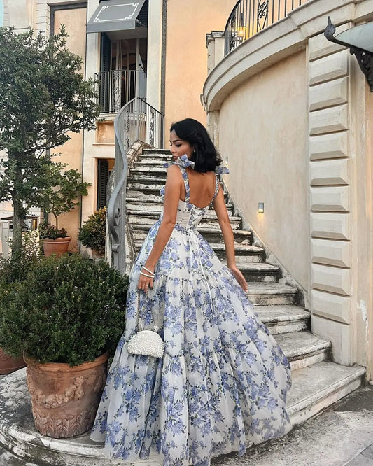 Sophia Blossom - Elegant Floral Tie-Strap Maxi Dress