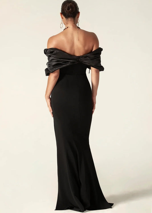 Elegant Slim-Fit Off-Shoulder Maxi Dress - Black