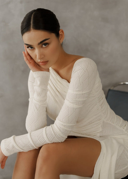 Ivory Elegance Maxi Dress with Asymmetric Draping
