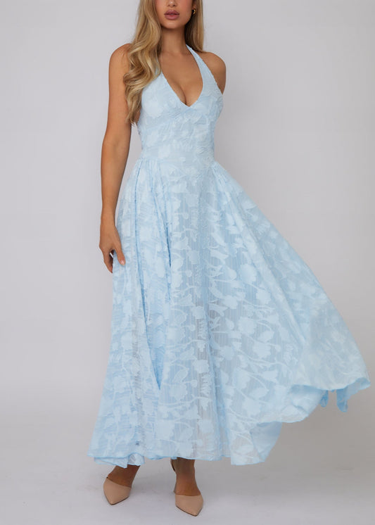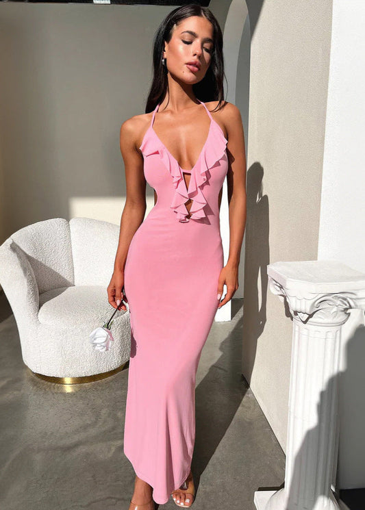 Serene Grace - Halter Maxi Dress with Ruffle Detail