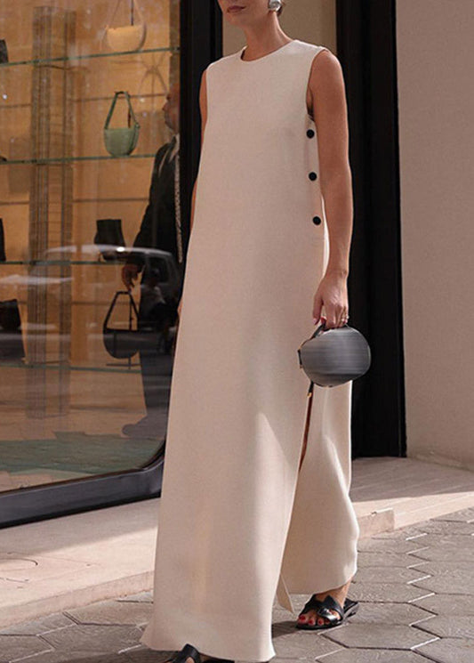 Celeste - Minimalist Sleeveless Button-Detail Maxi Dress