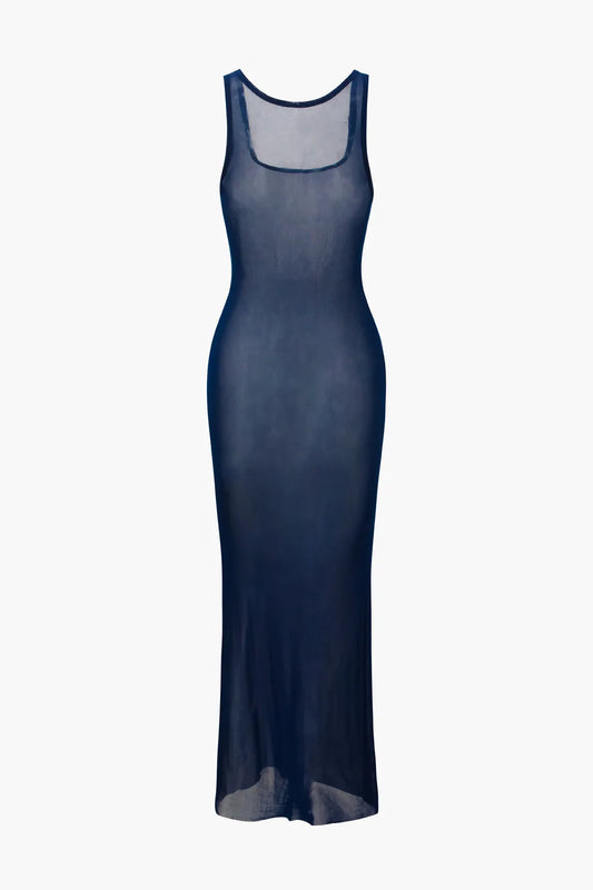 Berlin Blue Feather Stripe Knit Maxi Dress