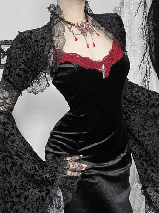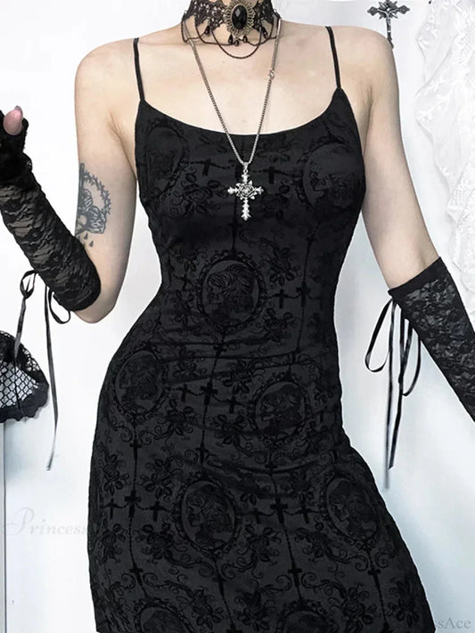 Halloween Cross Floral Halter Flocking Maxi Dress