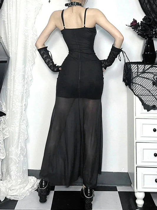 Sexy Long Mesh Slanted Shoulder Slim Fit Maxi Dress