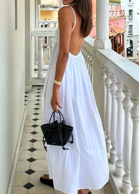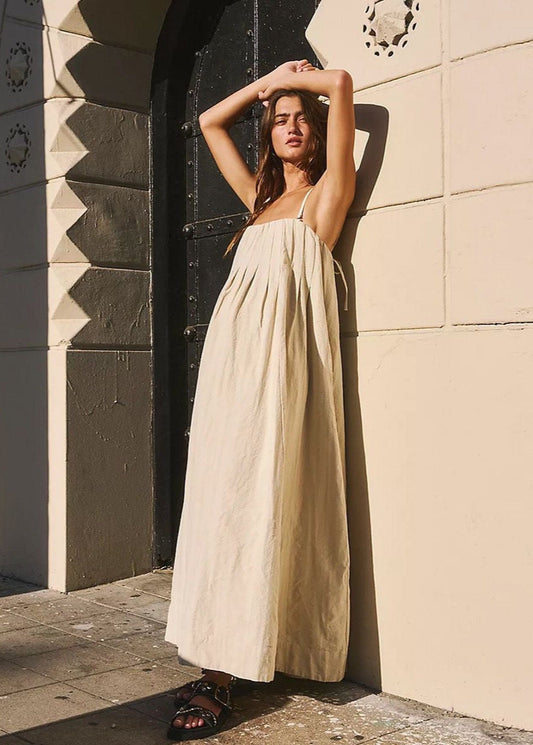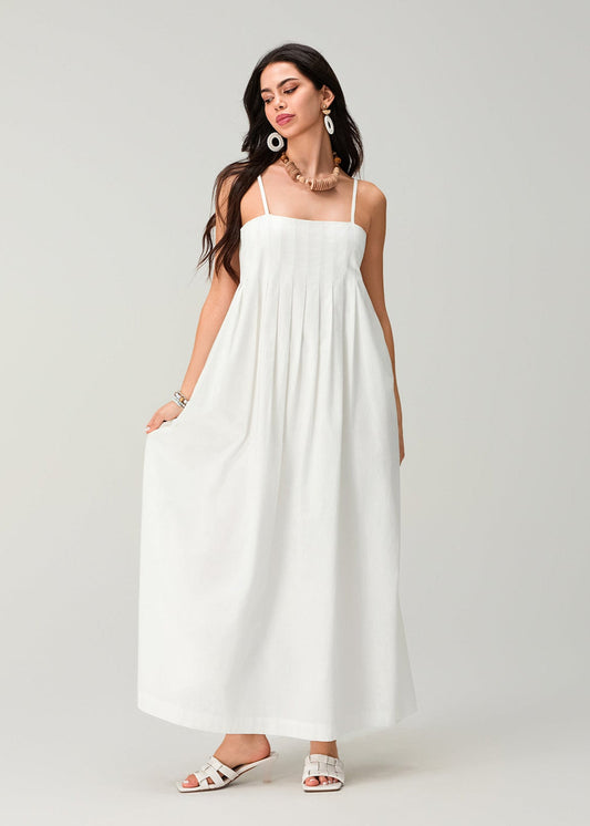 Linen Essence - White Pleated Maxi Sundress