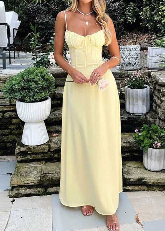 Soleil Maxi Dress – Yellow Spaghetti Strap Dress with Corset Bodice