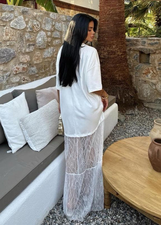 Lucera - Sheer Lace Contrast Maxi Dress
