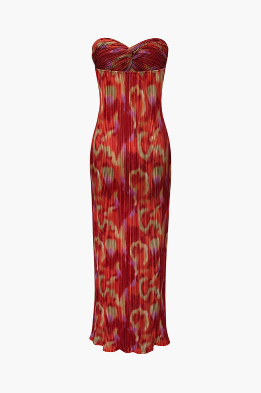 Vintage Abstract Print Plisse Strapless Slim Maxi Dress