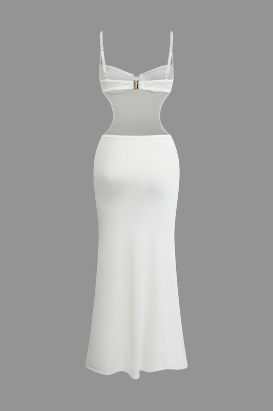 White Asymmetrical Twist Knot Mermaid Maxi Dress
