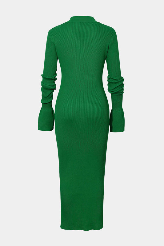 Solid Color Shell Sleeve Ribbed Buttons Down Maxi Dress