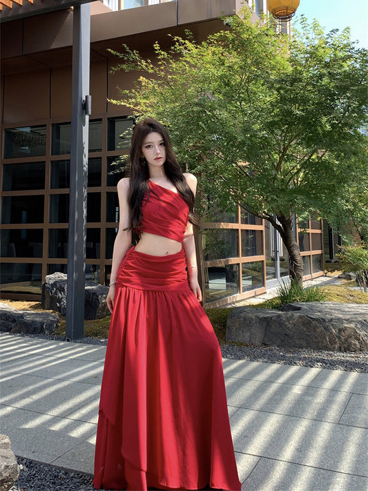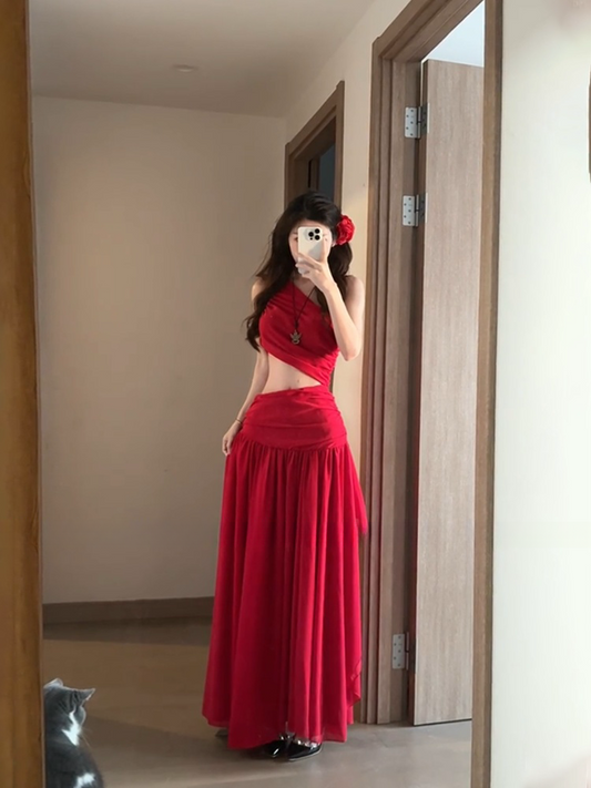 Red One-Shoulder Floral Maxi Dress Romantic & Bold Desert Look