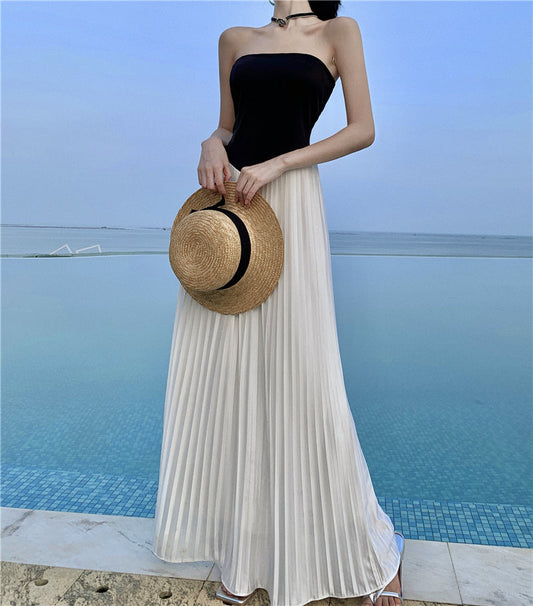 Off-Shoulder Pleated Maxi Dress Elegant Flowing Summer Outfit