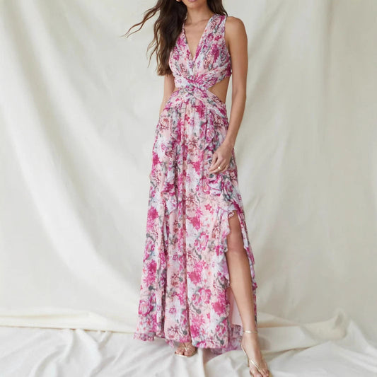 Boho Chic V-Neck Printed Maxi Dress Elegant Beach Vacation Outfit