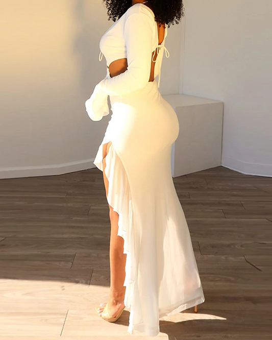 Sexy Long Sleeve V-Neck Lace Up Maxi Dress