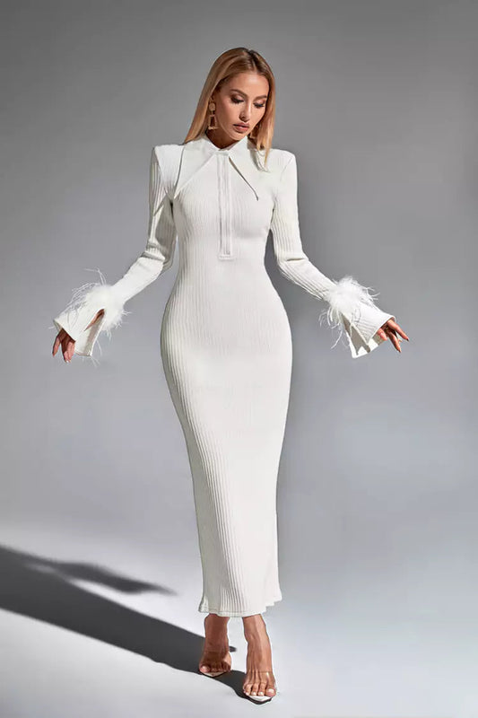 Noelle Black Feather Off-Shoulder Maxi Dress