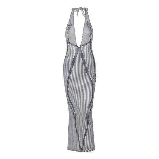 Sleeveless low cut hollow out solid backless cut out maxi dress