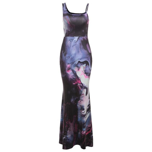 Contrast print irregular sleeveless backless maxi dress