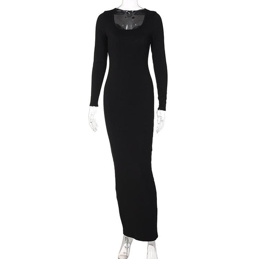 Long sleeve solid u neck maxi dress