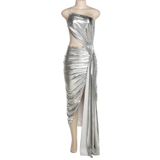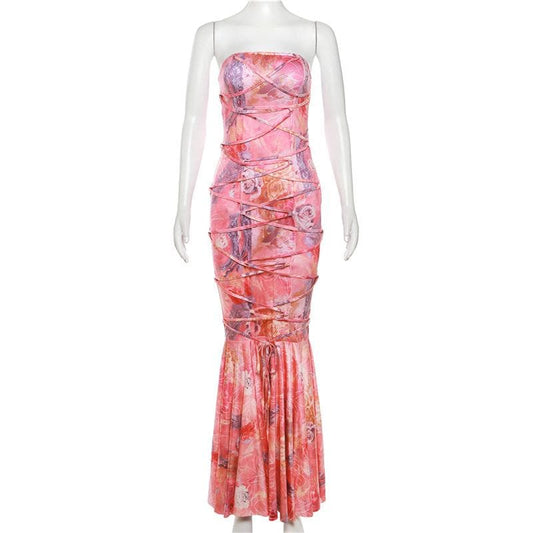 Ribbed ruffle solid backless sleeveless tube maxi dress