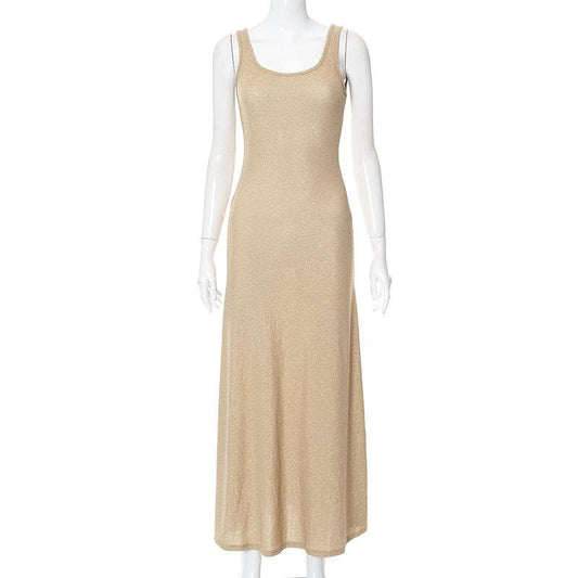Cowl neck bowknot sleeveless backless solid maxi dress