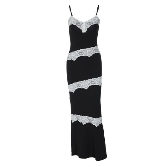 Lace contrast corset sweetheart neck ruffle irregular cami maxi dress