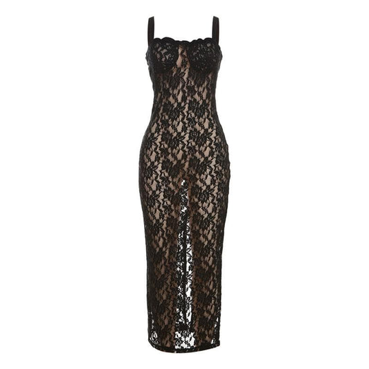 Hollow out solid slit sleeveless low cut cut out maxi dress