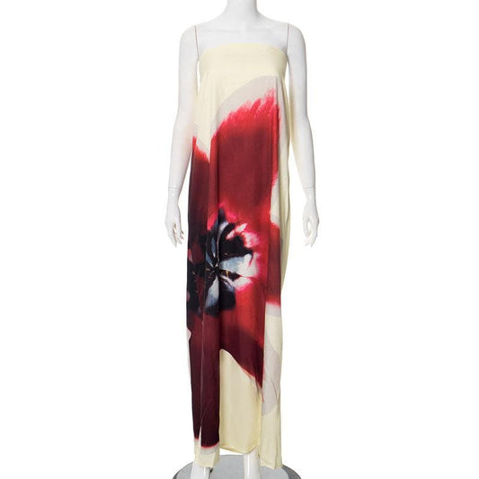 One shoulder irregular hollow out high slit print cut out maxi dress