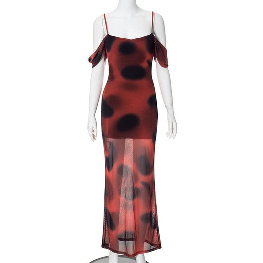 Mesh print slit cami maxi dress