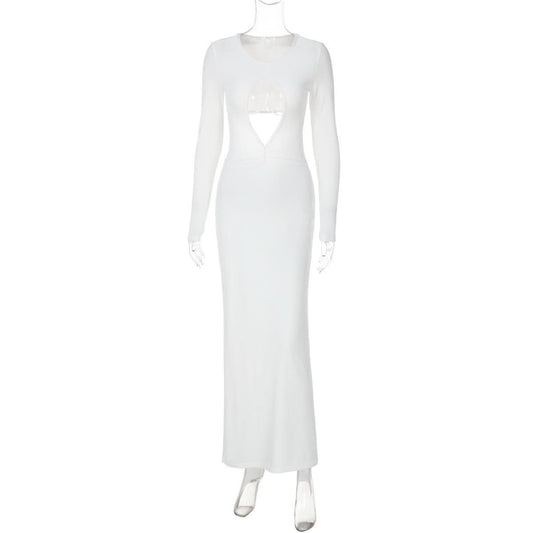 Long sleeve hollow out ruched cut out maxi dress