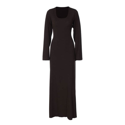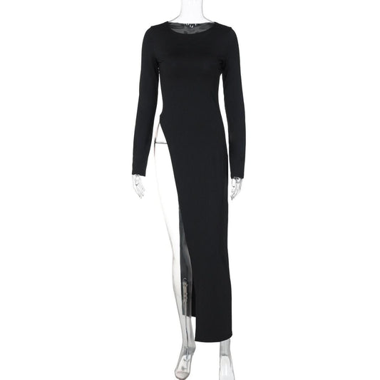 Long sleeve round neck slit solid maxi dress