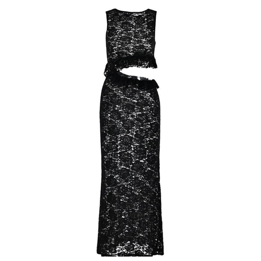 Crewneck hollow out lace ruched see through cut out maxi dress