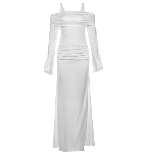 Off shoulder long sleeve hollow out slit cut out maxi dress