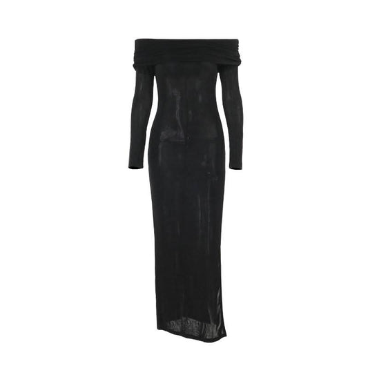 Off shoulder long sleeve high slit o ring maxi dress
